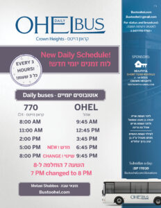 The Daily Ohel Bus provides bussing at a minimal cost making going to the Ohel accessible to everyone. Thanks to donors like you The Ohel Bus can continue offering subsidized pricing.